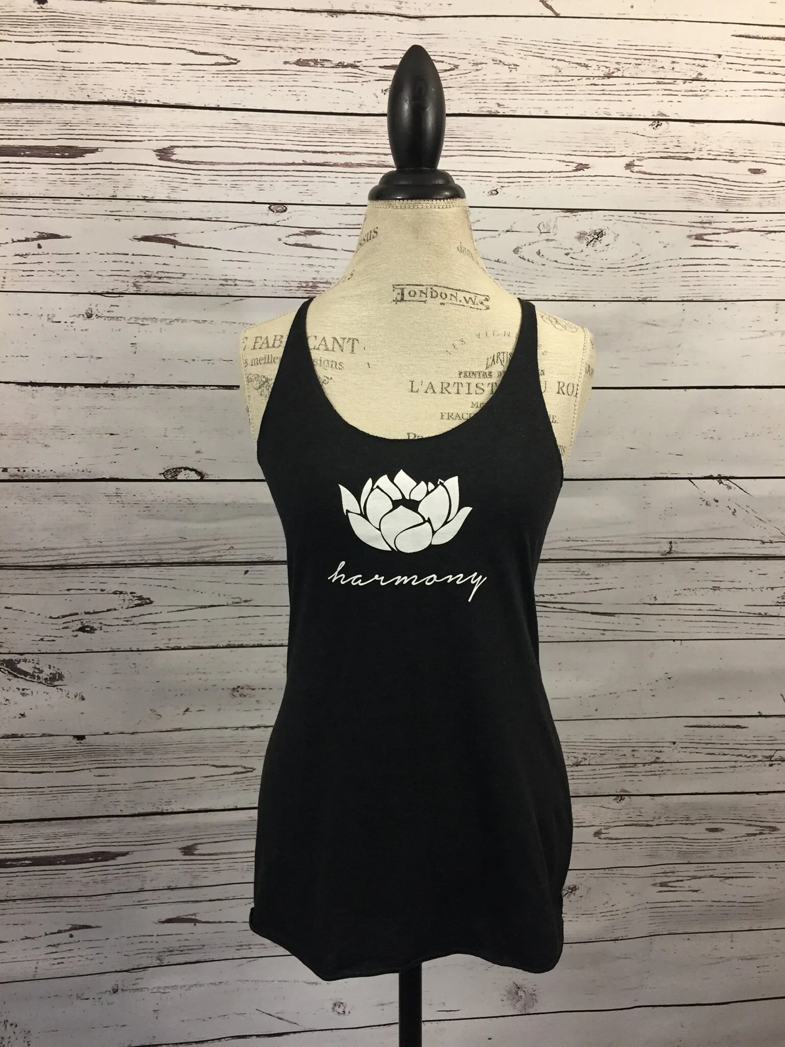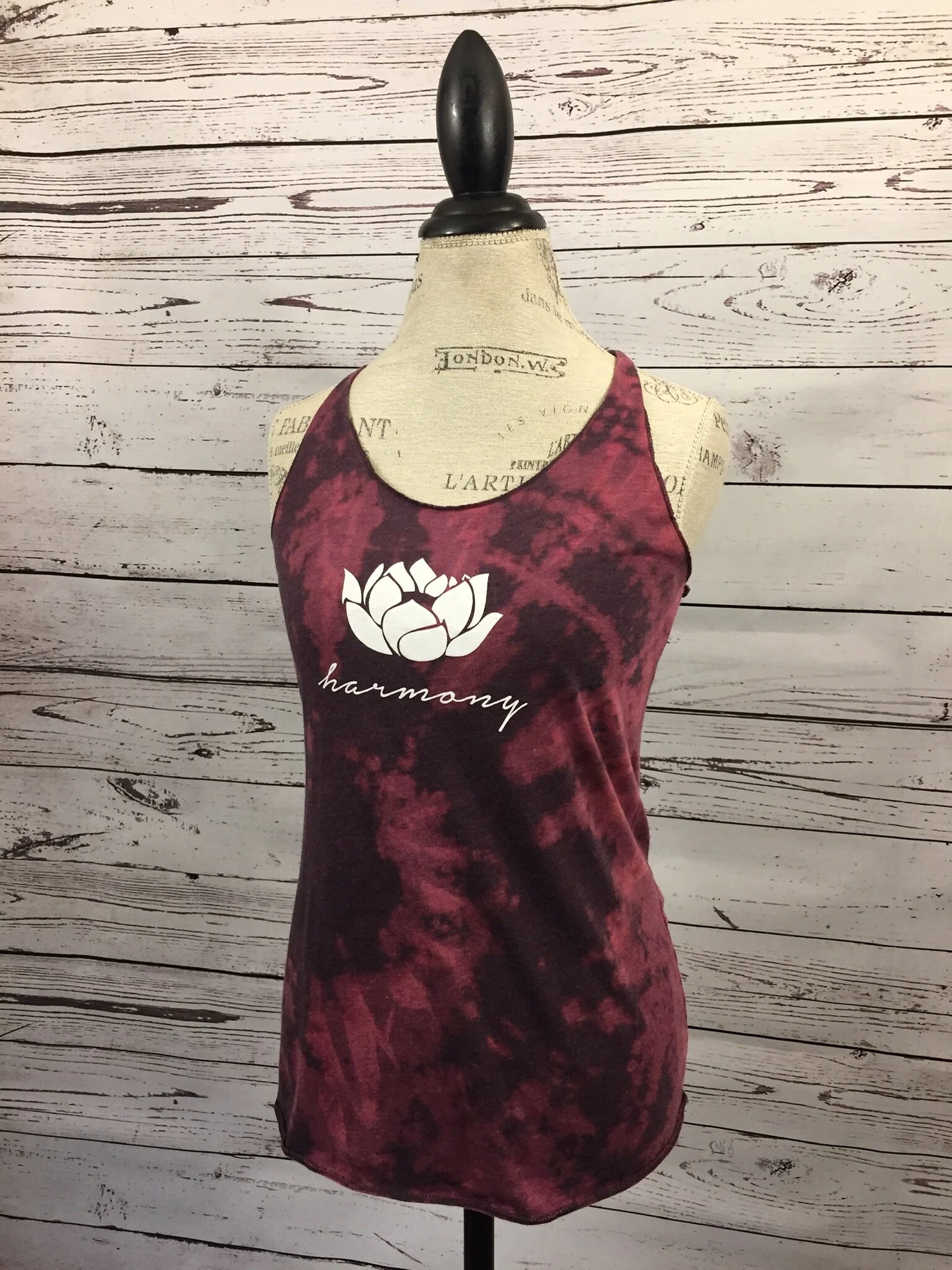 The Harmony Chakra Tank is by far one of the most popular styles that I made for Maitri Garden. The art down the back is a different take on the Chakras. Instead of doing the common symbols for each Chakra, I focused more on the Earth Elements for each Chakra. Starting from the bottom the Root Chakra (red) is associated with Earth, Sacral Chakra (orange) connects with Water, Navel Chakra (yellow) is joined with Fire, Heat Chakra (green) is paired with Air, the Throat Chakra (Blue) is connected to Sound, the Third Eye Chakra (Indigo) is associated with Light, and last but not least is the Crown Chakra (purple) is identified with Thought.